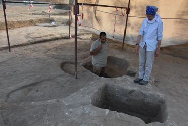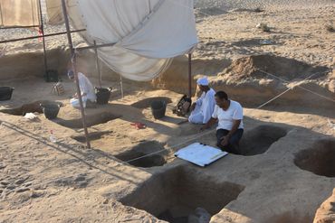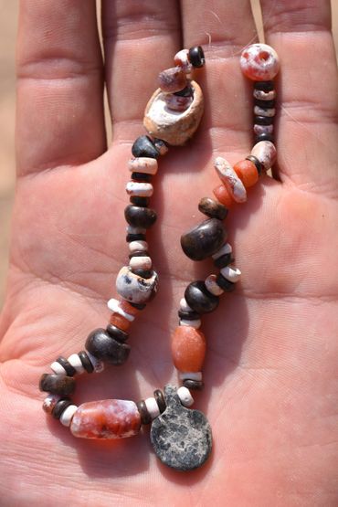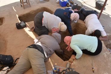 In the 2019 season, we located a series of graves containing human remains and cultural artefacts. The dates are yet to be confirmed but all individuals seem to have been interred between about 3300 and 3000 BC. Most burials contained ceramic vessels, and some also contained offerings such as red, black and white stone beads that - judging from their positions in the graves - were probably necklaces and bracelets. The range of grave goods was not as extensive as the 1995-1999 seasons, suggesting internal differentiation – perhaps based upon status, or chronological phase – within the cemetery.